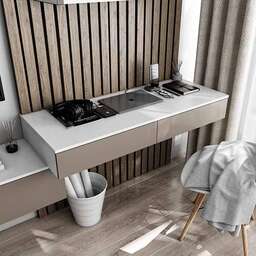 Туалетний (комп'ютерний) підвісний стіл виготовлений у сучасному стилі із високоякісного ламінованого ДСП 16 мм. Основний колір корпусу і колір фасаду ящиків можуть бути різними, в залежності від ваших уподобань.