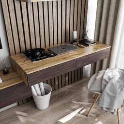 Туалетний (комп'ютерний) підвісний стіл виготовлений у сучасному стилі із високоякісного ламінованого ДСП 16 мм. Основний колір корпусу і колір фасаду ящиків можуть бути різними, в залежності від ваших уподобань.