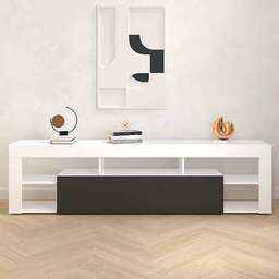 Тумба під ТВ з полицями та двома нішами, ширина 200 см, біла - антрацит