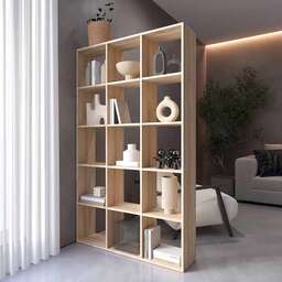 Книжкова полиця-стелаж на 15 комірок виготовлена з якісного матеріалу. Полиця для книг або інших предметів може також бути використана для зонування приміщення і має достатньо місця для зберігання Можливе як вертикальне так і горизонтальне розташування.