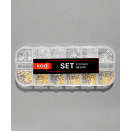 Декор здатний навіть простий однотонний манікюр перетворити на справжній витвір мистецтва. Головне, проявити трохи фантазії та не боятися експериментувати, пробуючи нове. Готові набори для декору нігтів від міжнародного бренду Kodi Professional стануть справжньою знахідкою для майстра.Мікс №6 є найбільш затребуваною комбінацією зі срібних і золотих декоративних елементів різної форми та розміру: крапельки, ромби, трикутники та круглі бульйонки допоможуть створити приголомшливий дизайн за лічені хвилини. Також декоративні елементи можна використовувати в акваріумному дизайні, досягаючи цікавого об'єму в композиції.Упаковка: пластиковий контейнер на 12 ємностей.Рекомендації по використанню: можна використовувати для класичного дизайну, а також для акваріумного дизайну. В разі використання декору як поверхневого дизайну, рекомендується кріпити декор на готове гель-лакове покриття або змодельовані нігті, покриті фінішним топом. Якщо фінішний топ з липким шаром — попередньо зняти липкий шар.