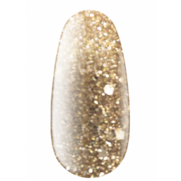 Гель-лак № 100 SH (серія SHINE) має прозору основу з брокатом і шимером в кольоровій гамі шампань. Може застосовуватися в якості додаткового покриття до основного кольору.