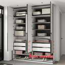 Шафу R-07 з антресоллю можна додатково доукомплектувати внутрішніми ящиками. Вона поєднується з іншими шафами серії Рамо, тому можна організувати ідеальний простір на будь-який смак.
