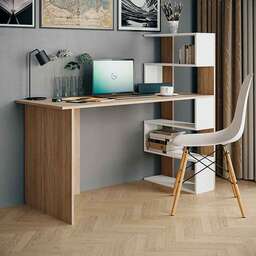 Стіл комп'ютерний письмовий Техас з полицями справа, дуб сонома - білий - відгуки про товар